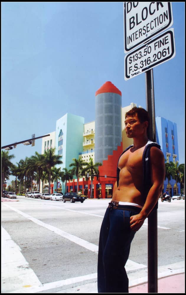 邁阿密是由許多小島串連起來的一個特殊地形,除了市區現代化的高樓大廈,還有許多美麗的海灘、椰子樹、毫宅、遊艇碼頭,這兒似乎是有錢有閒的人的天堂。這次最特別的是第一次啟用非亞裔的模特兒參與演出,Lucas是阿根廷人,我們從裸體海灘找來的,他也是個兼職模特兒。